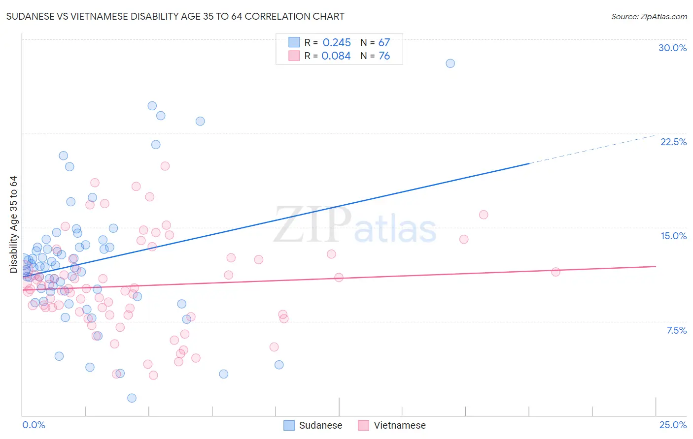 Sudanese vs Vietnamese Disability Age 35 to 64 Correlation Chart