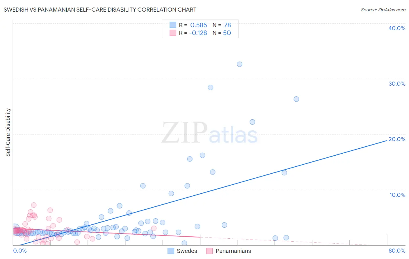 Swedish vs Panamanian Self-Care Disability Correlation Chart