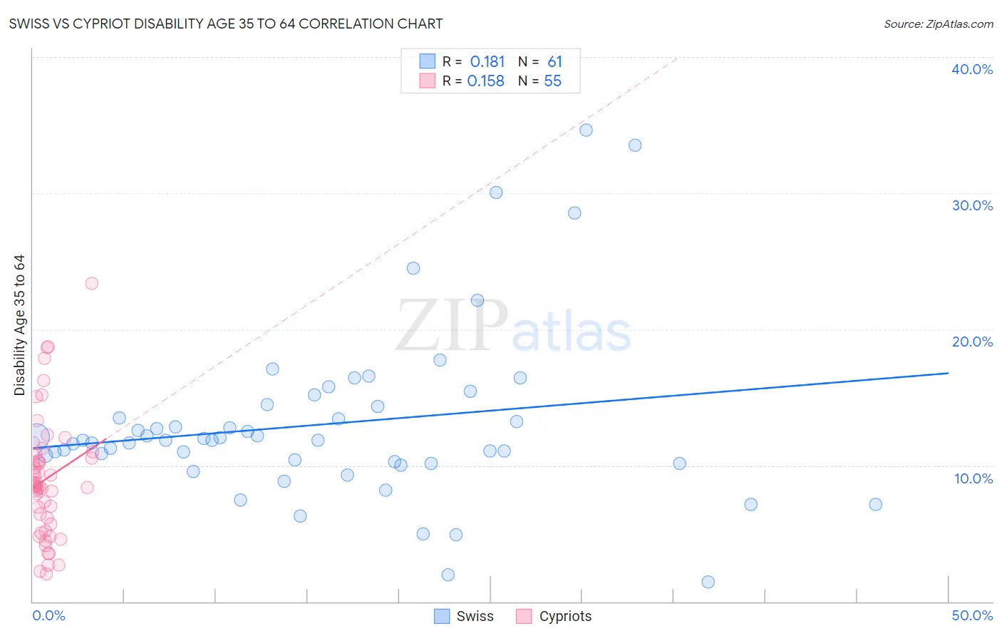 Swiss vs Cypriot Disability Age 35 to 64 Correlation Chart