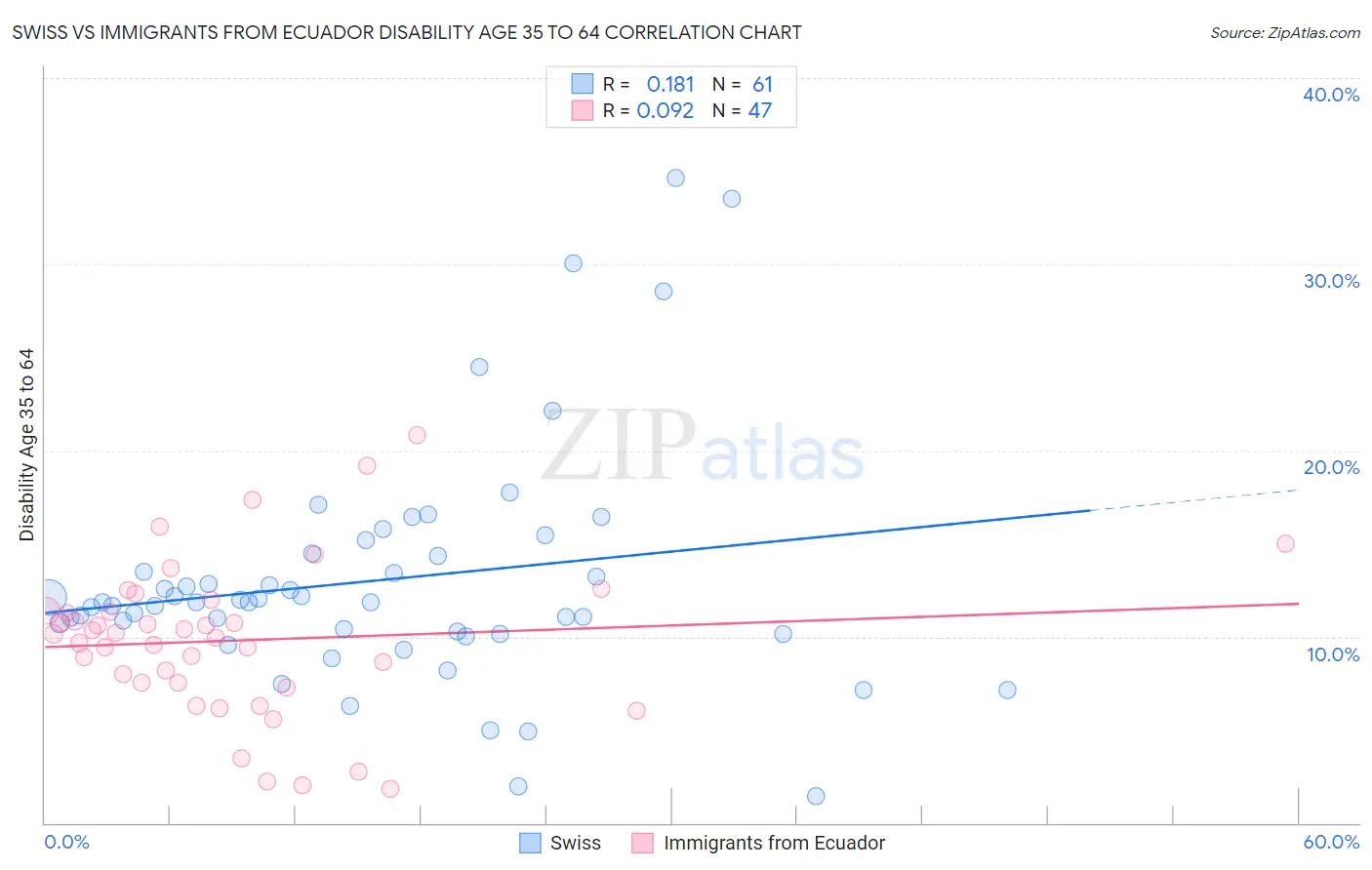 Swiss vs Immigrants from Ecuador Disability Age 35 to 64 Correlation Chart