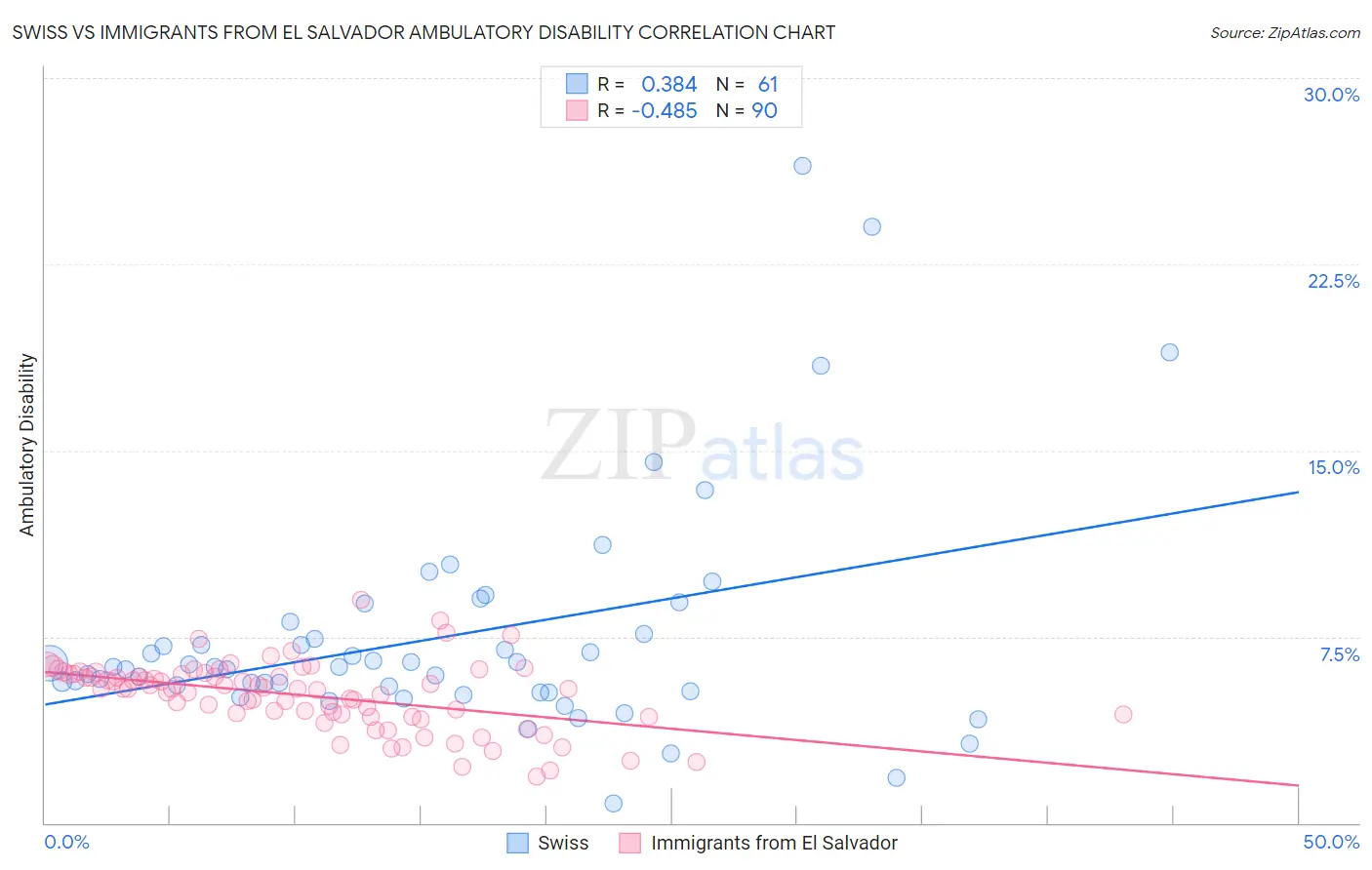 Swiss vs Immigrants from El Salvador Ambulatory Disability Correlation Chart