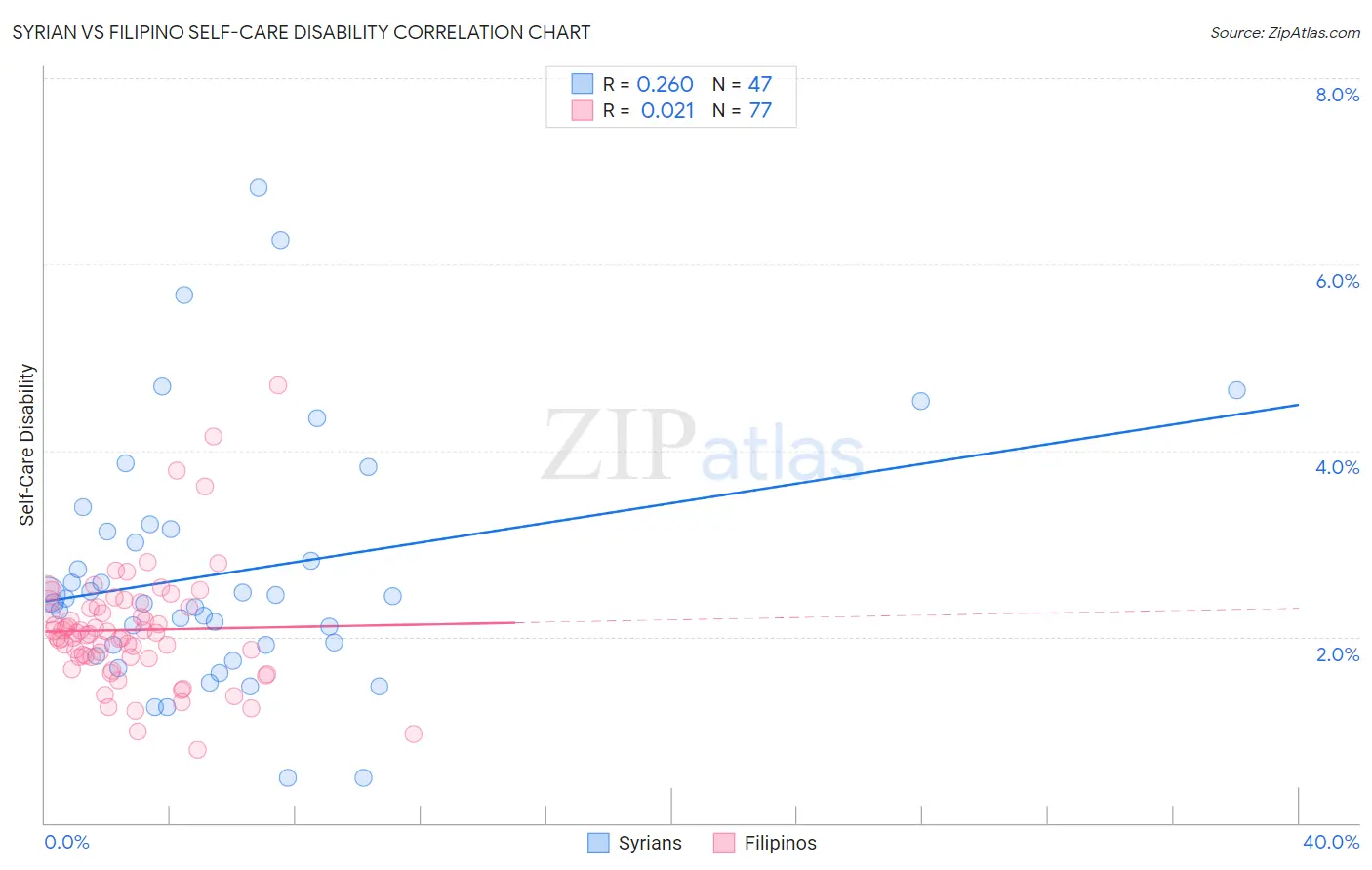 Syrian vs Filipino Self-Care Disability Correlation Chart