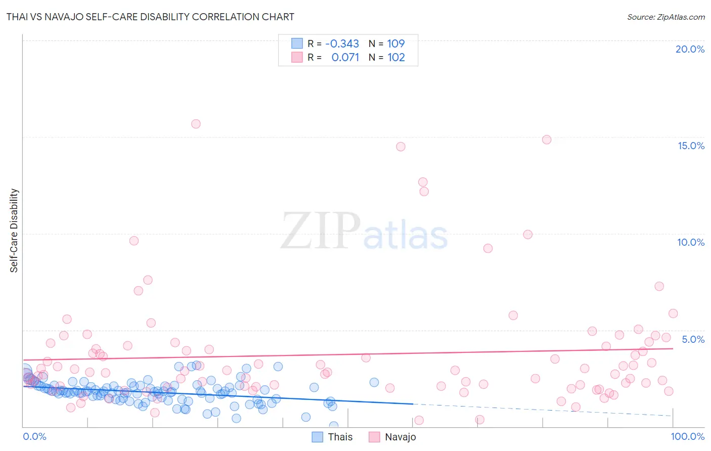 Thai vs Navajo Self-Care Disability Correlation Chart