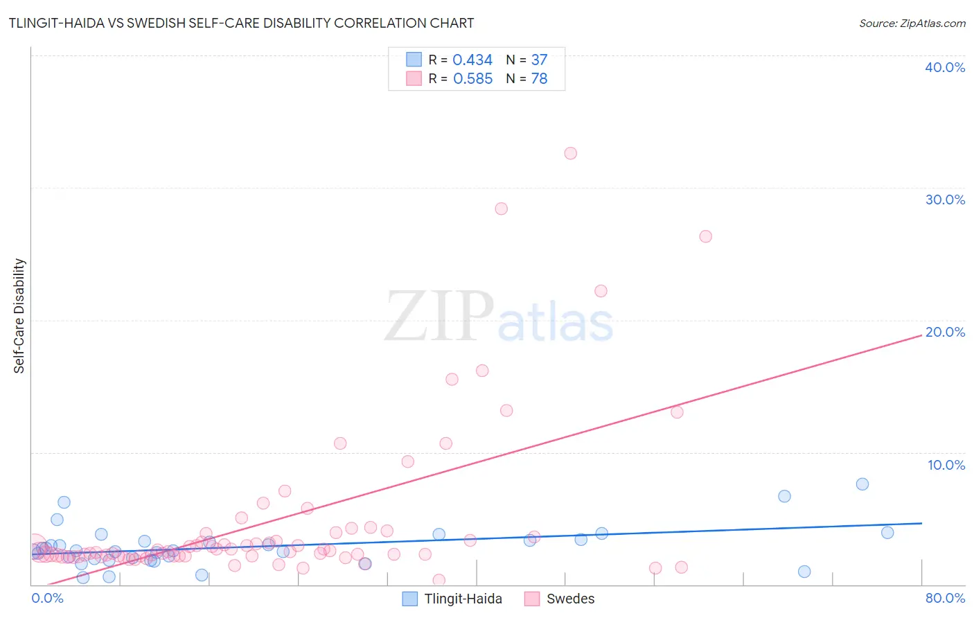Tlingit-Haida vs Swedish Self-Care Disability Correlation Chart