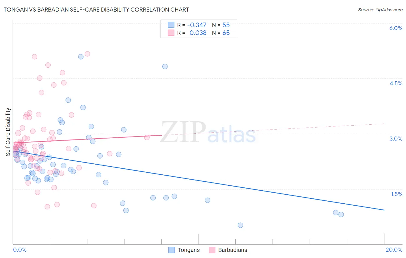Tongan vs Barbadian Self-Care Disability Correlation Chart