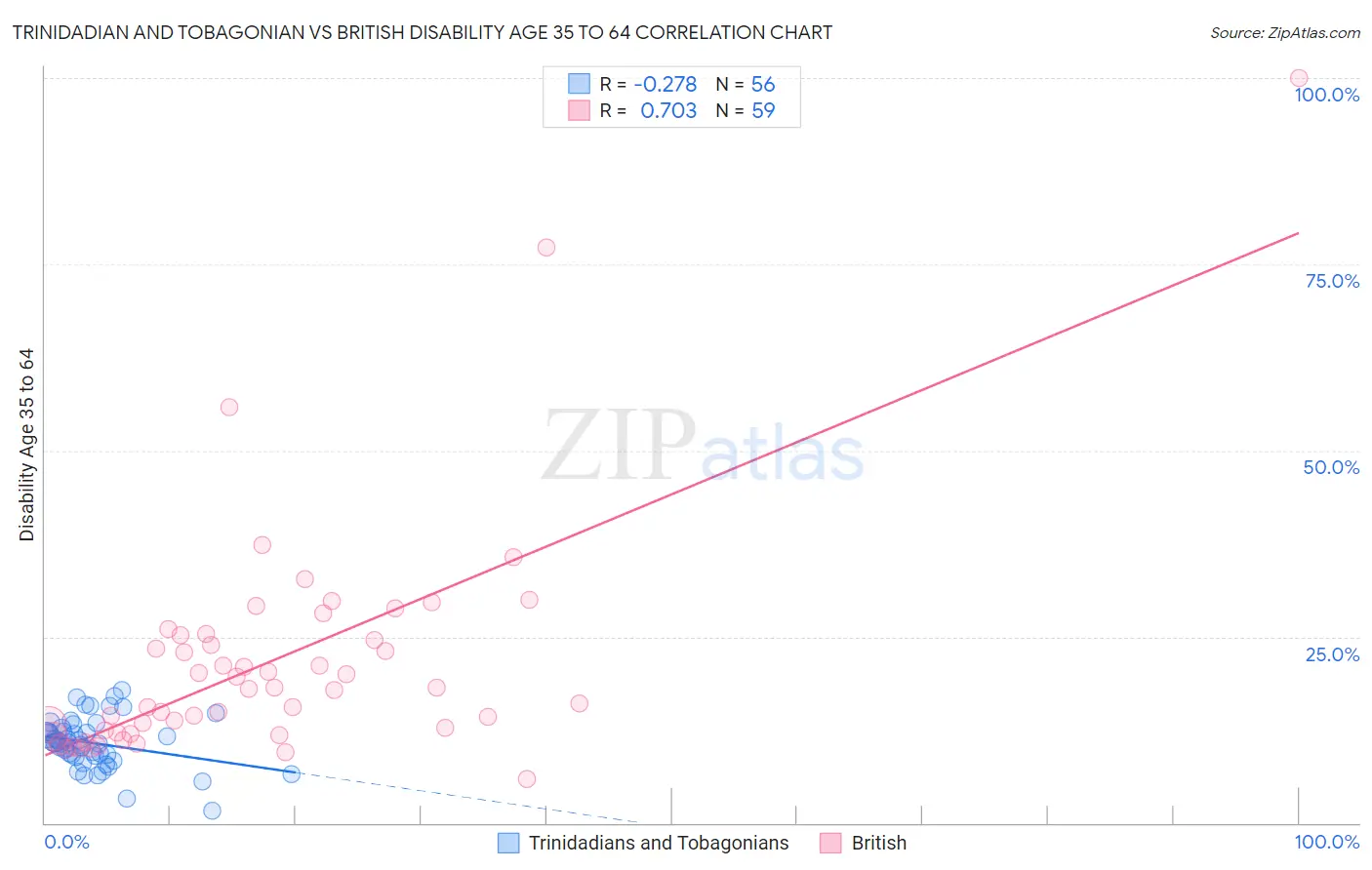 Trinidadian and Tobagonian vs British Disability Age 35 to 64 Correlation Chart