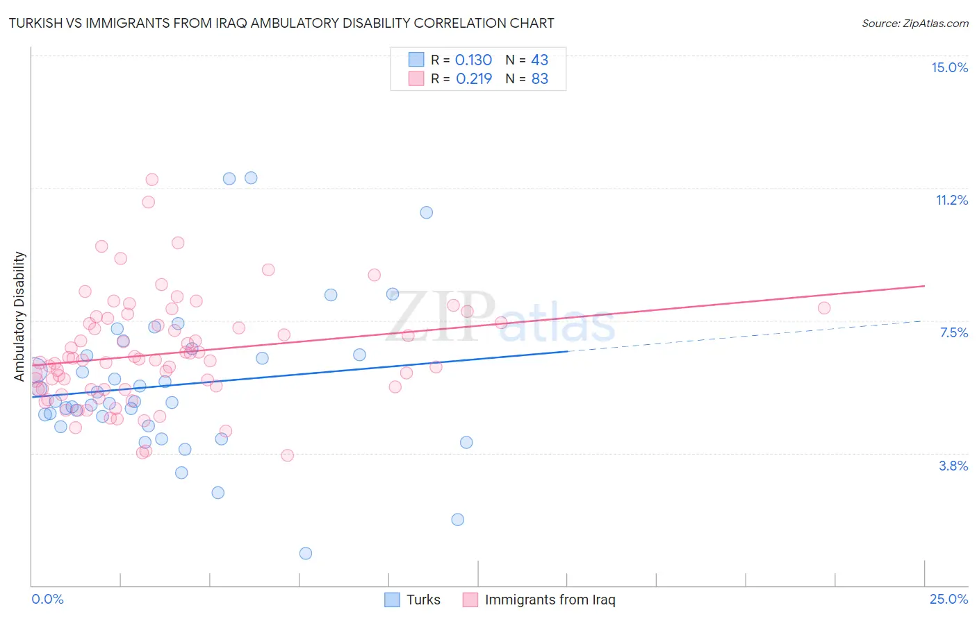 Turkish vs Immigrants from Iraq Ambulatory Disability Correlation Chart