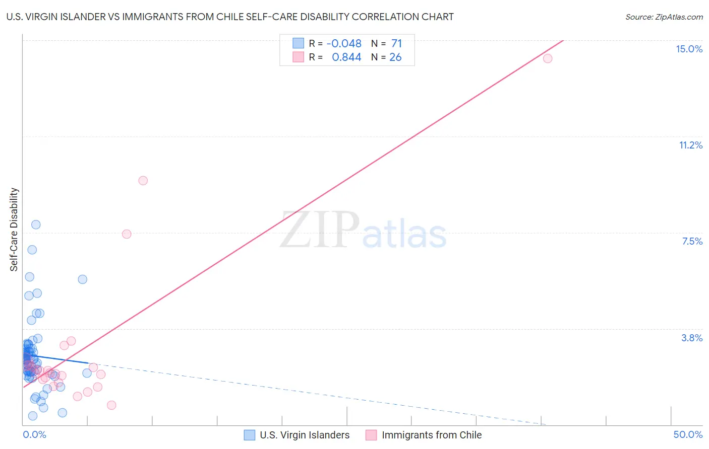 U.S. Virgin Islander vs Immigrants from Chile Self-Care Disability Correlation Chart