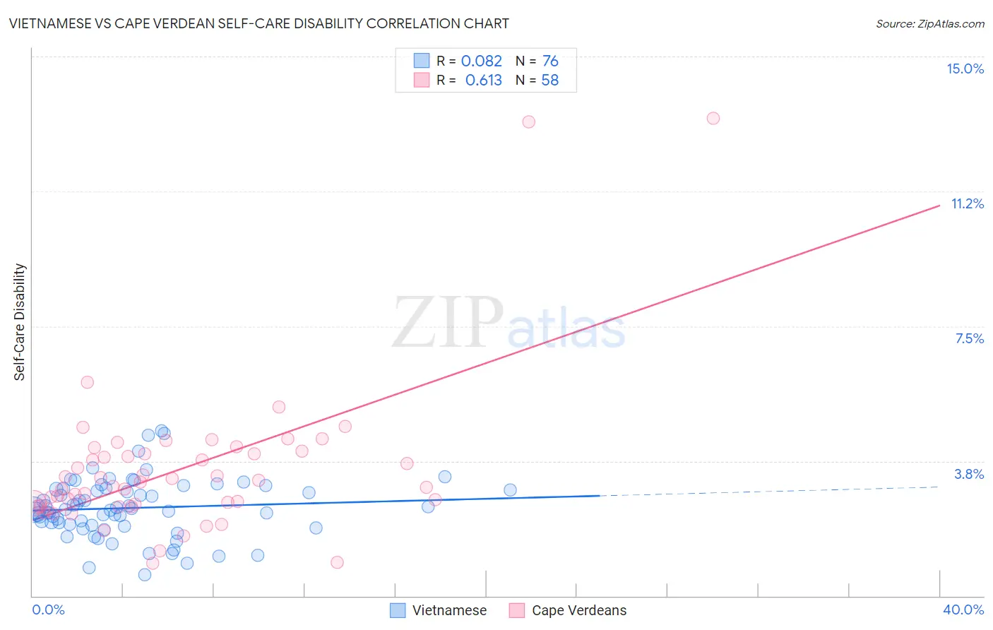 Vietnamese vs Cape Verdean Self-Care Disability Correlation Chart