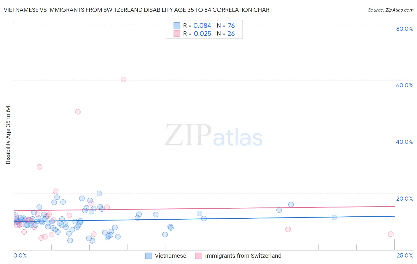 Vietnamese vs Immigrants from Switzerland Disability Age 35 to 64 Correlation Chart
