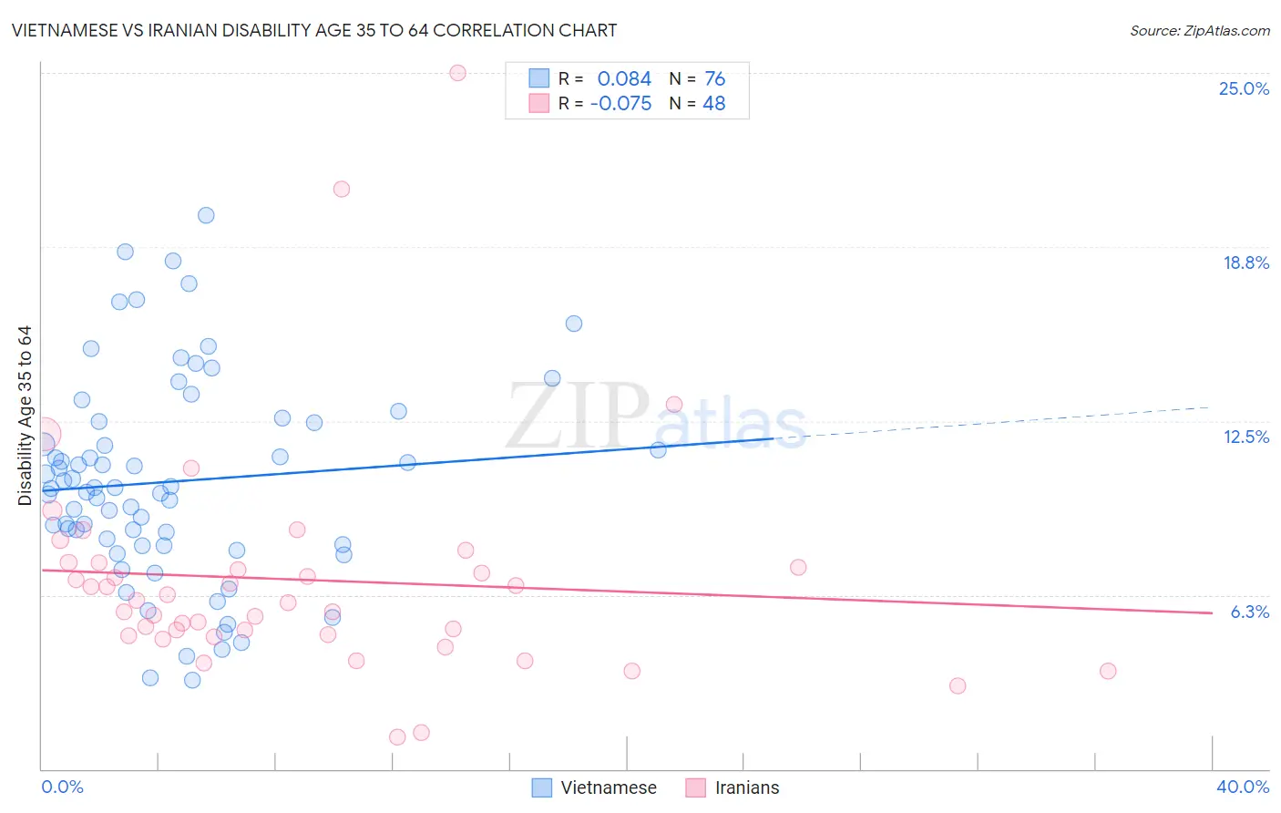 Vietnamese vs Iranian Disability Age 35 to 64 Correlation Chart