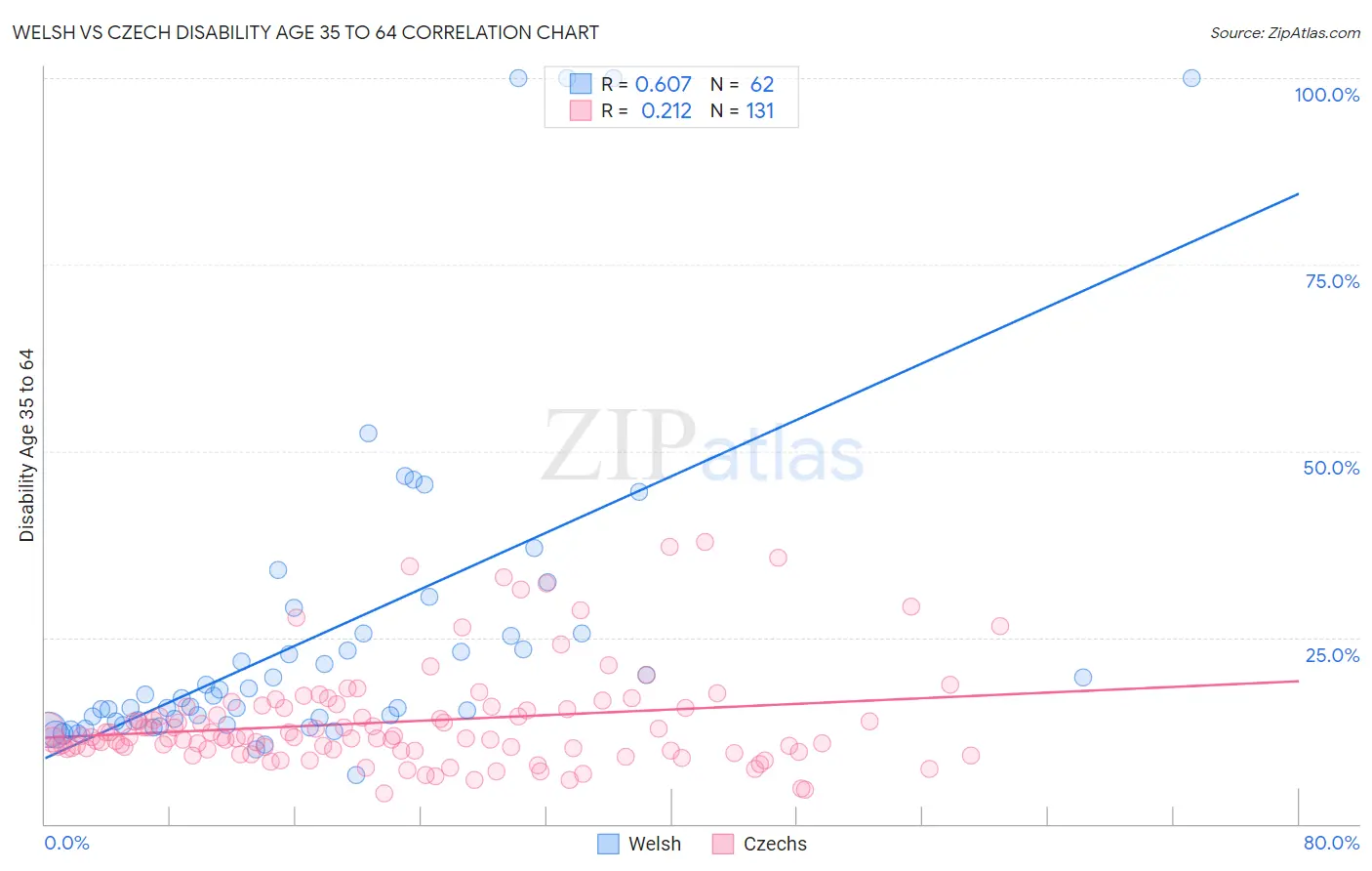 Welsh vs Czech Disability Age 35 to 64 Correlation Chart