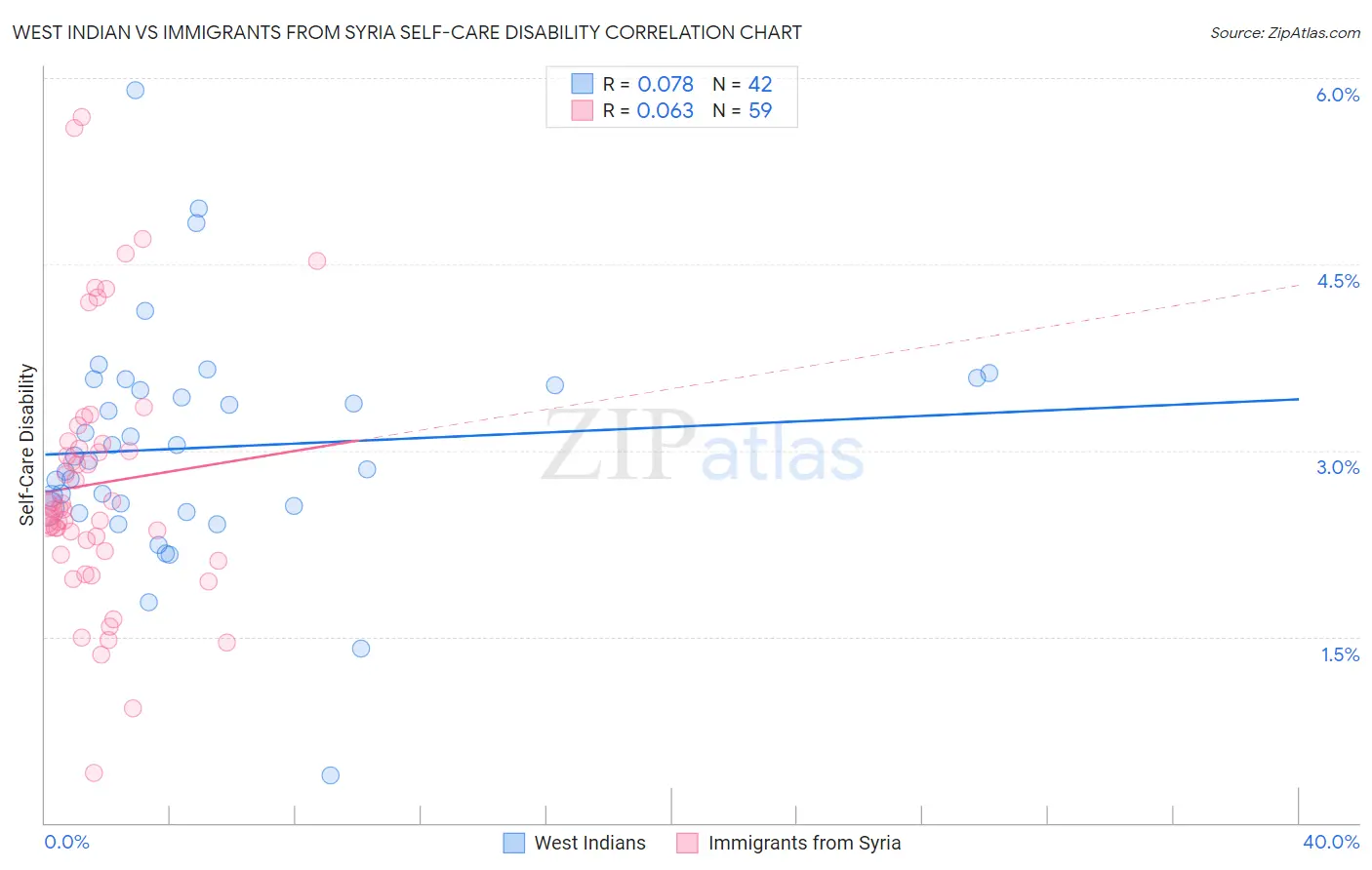 West Indian vs Immigrants from Syria Self-Care Disability Correlation Chart