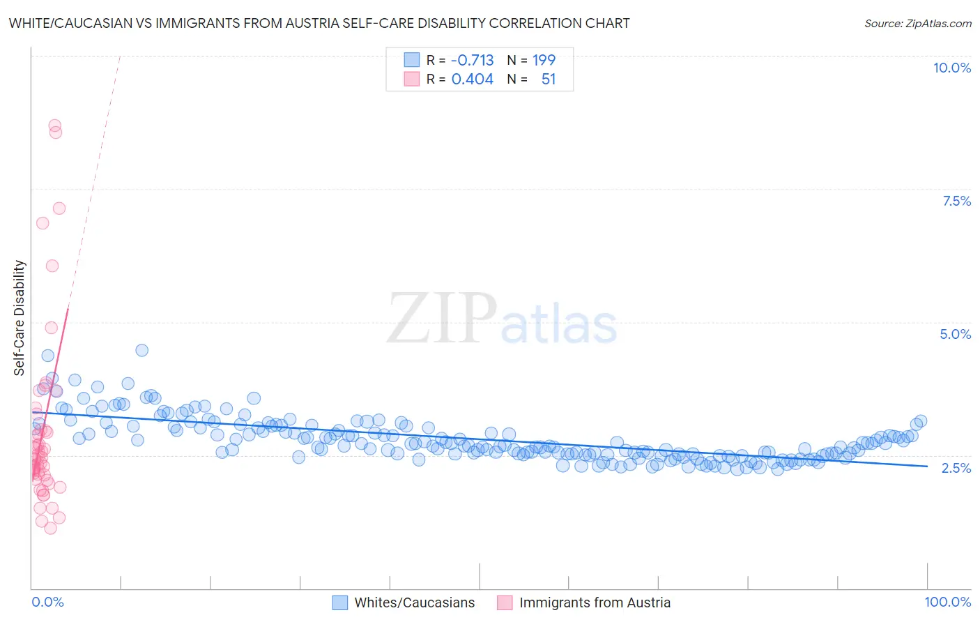 White/Caucasian vs Immigrants from Austria Self-Care Disability Correlation Chart
