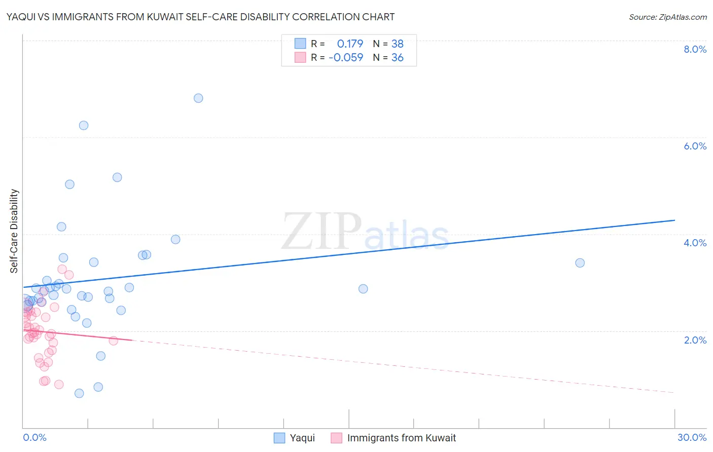 Yaqui vs Immigrants from Kuwait Self-Care Disability Correlation Chart
