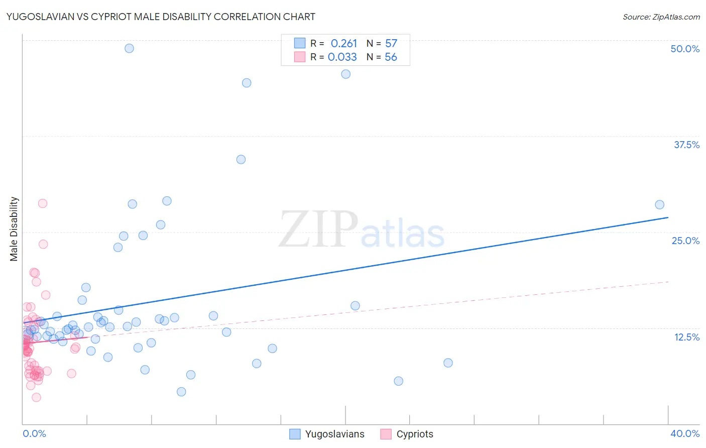 Yugoslavian vs Cypriot Male Disability Correlation Chart