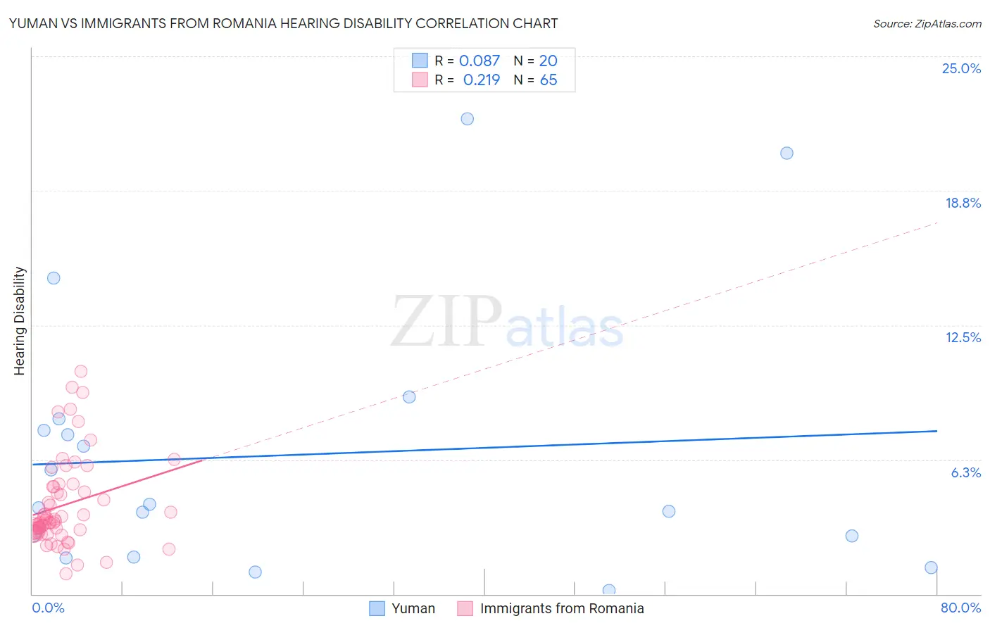 Yuman vs Immigrants from Romania Hearing Disability Correlation Chart