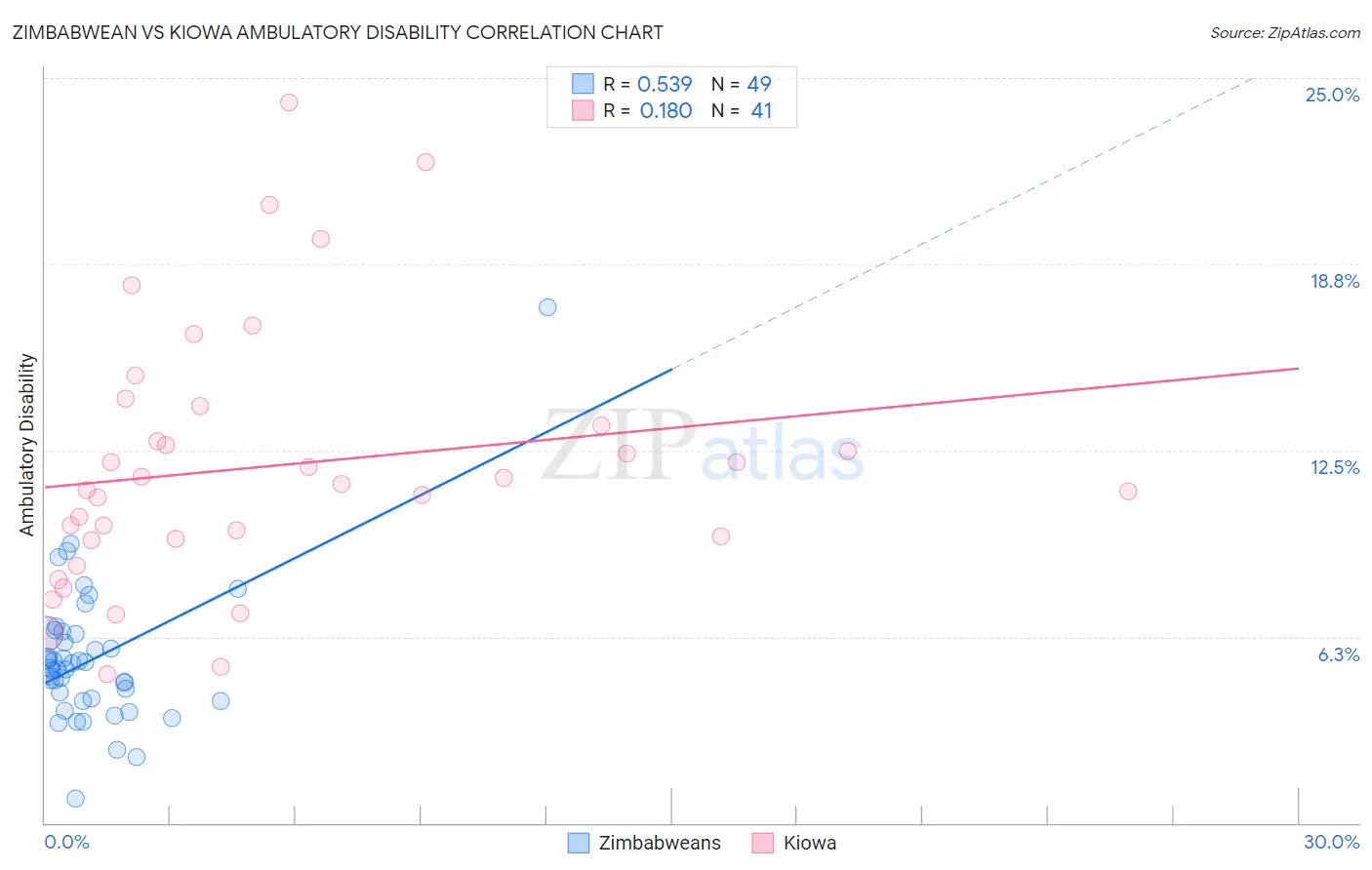 Zimbabwean vs Kiowa Ambulatory Disability Correlation Chart