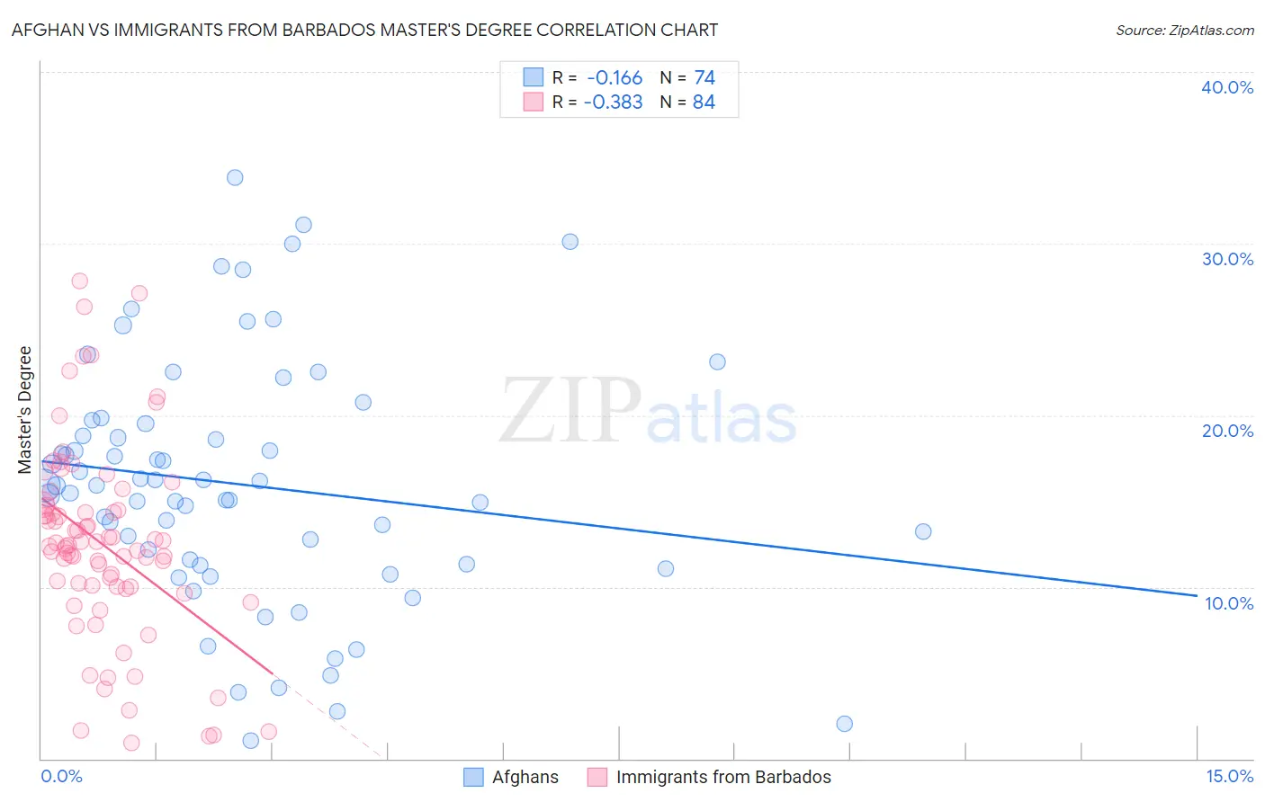 Afghan vs Immigrants from Barbados Master's Degree Correlation Chart