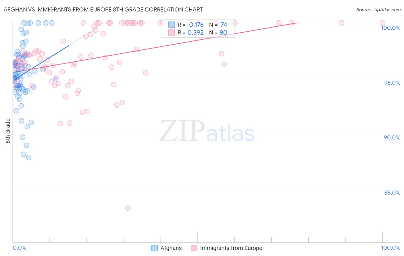 Afghan vs Immigrants from Europe 8th Grade Correlation Chart