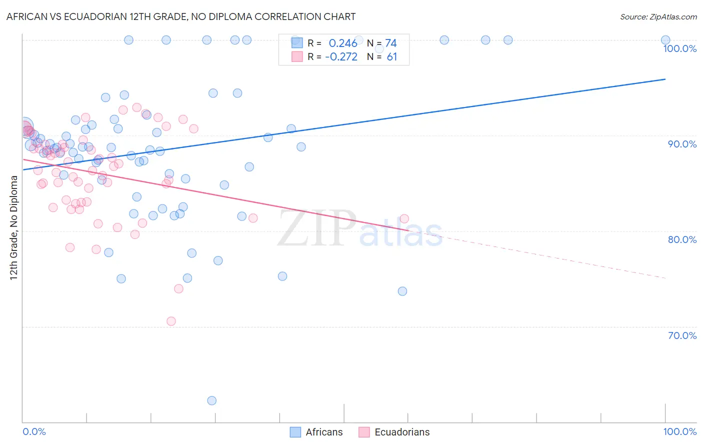 African vs Ecuadorian 12th Grade, No Diploma Correlation Chart