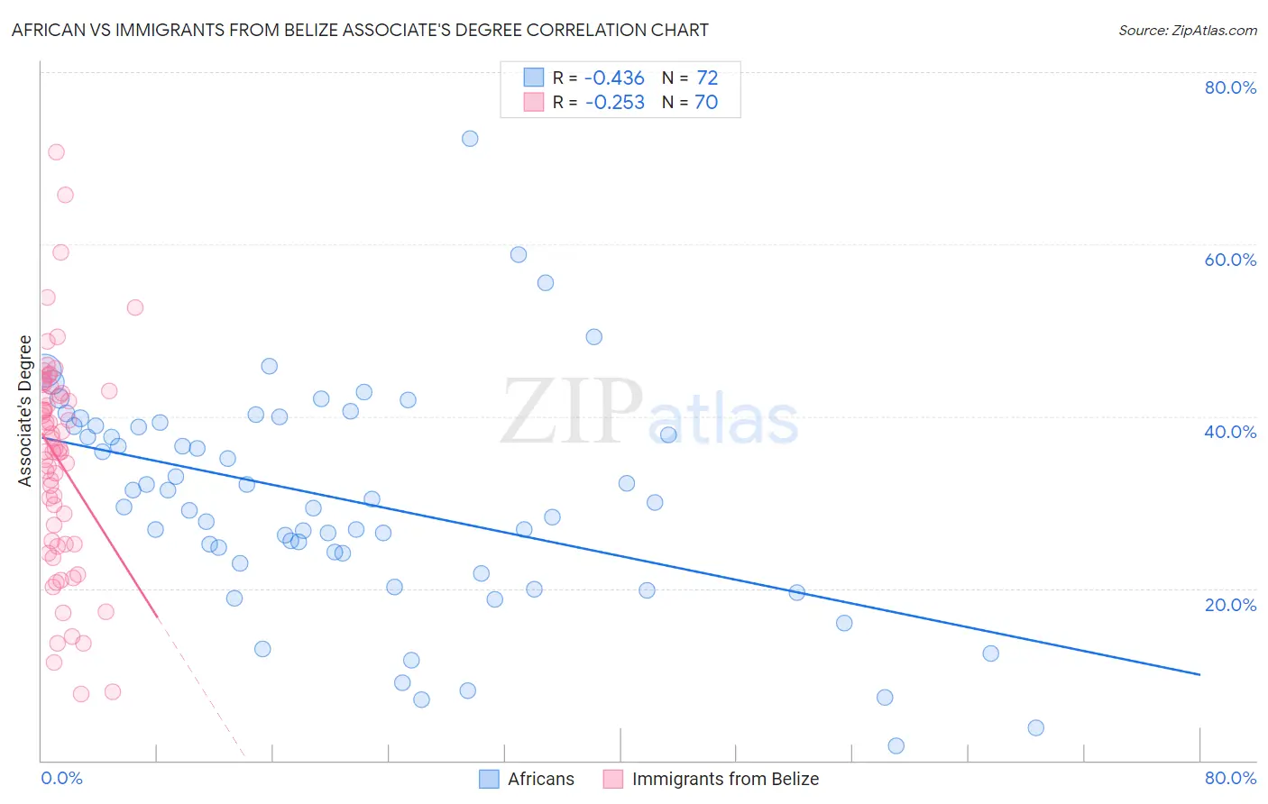 African vs Immigrants from Belize Associate's Degree Correlation Chart