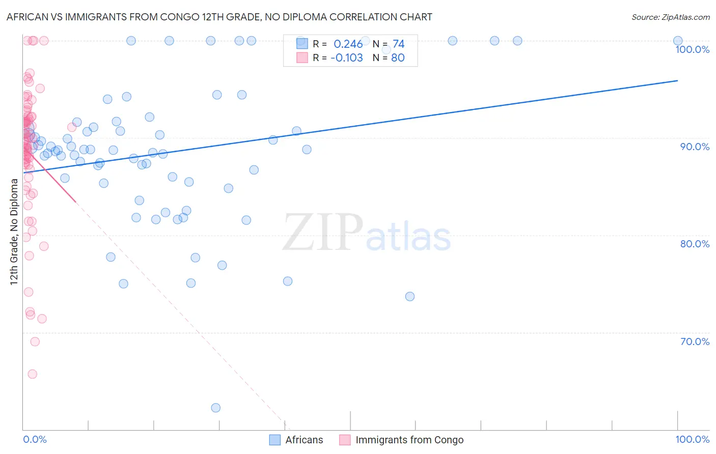 African vs Immigrants from Congo 12th Grade, No Diploma Correlation Chart
