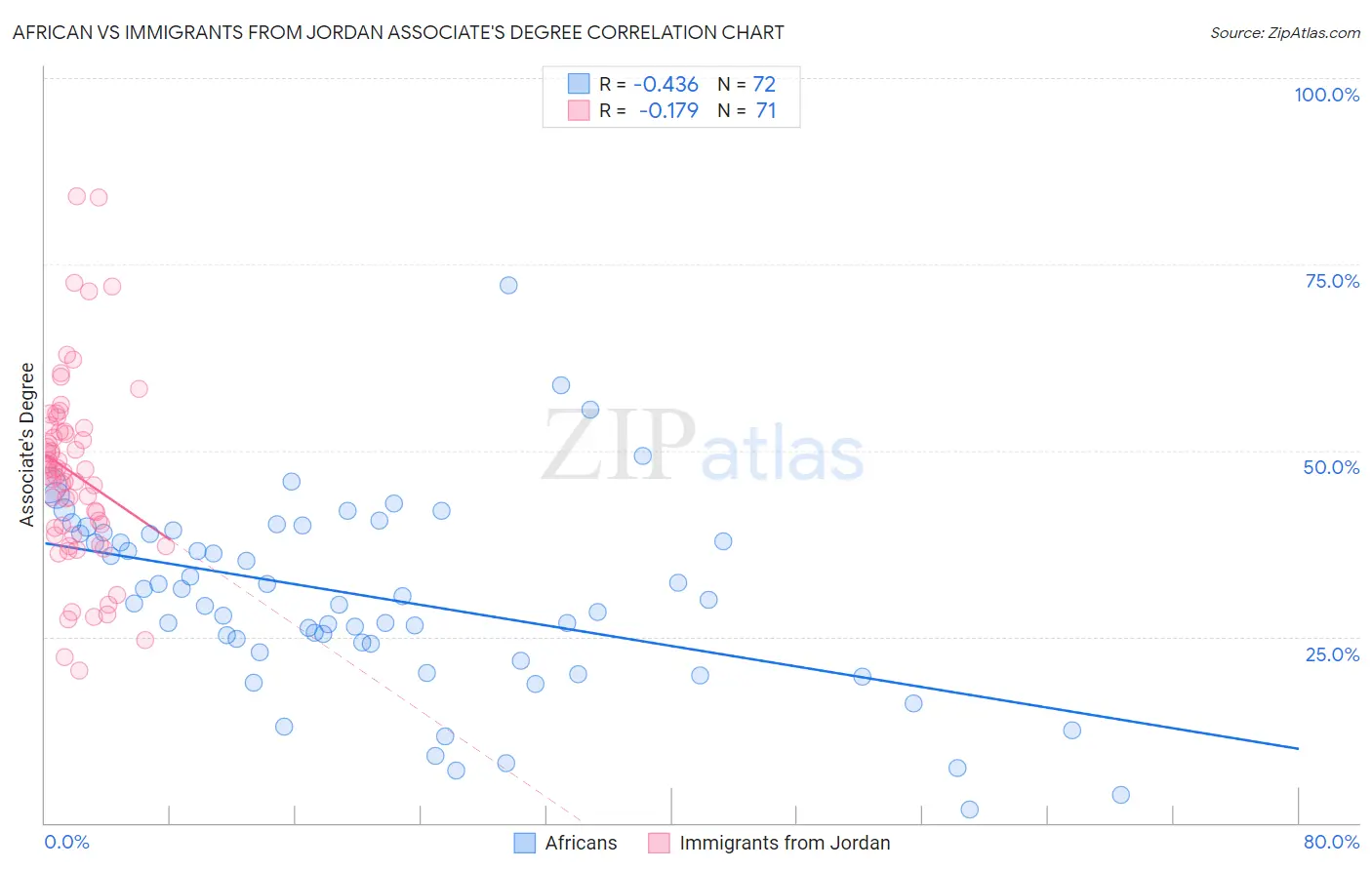 African vs Immigrants from Jordan Associate's Degree Correlation Chart