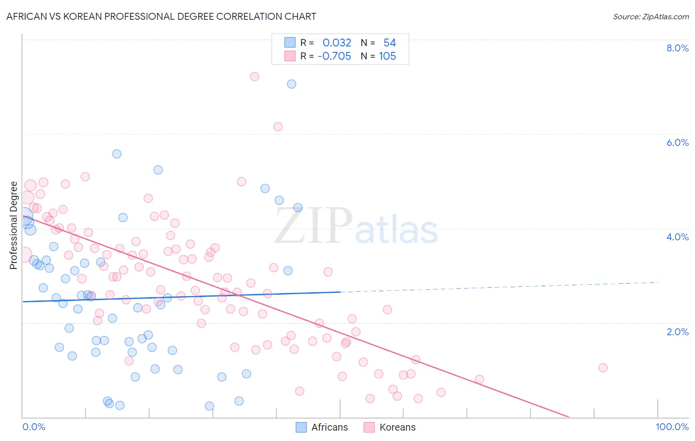 African vs Korean Professional Degree Correlation Chart