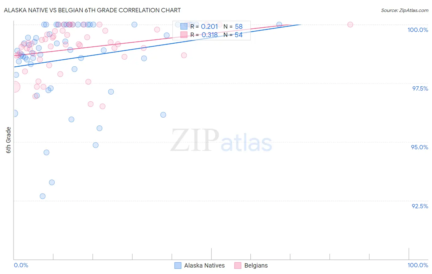 Alaska Native vs Belgian 6th Grade Correlation Chart