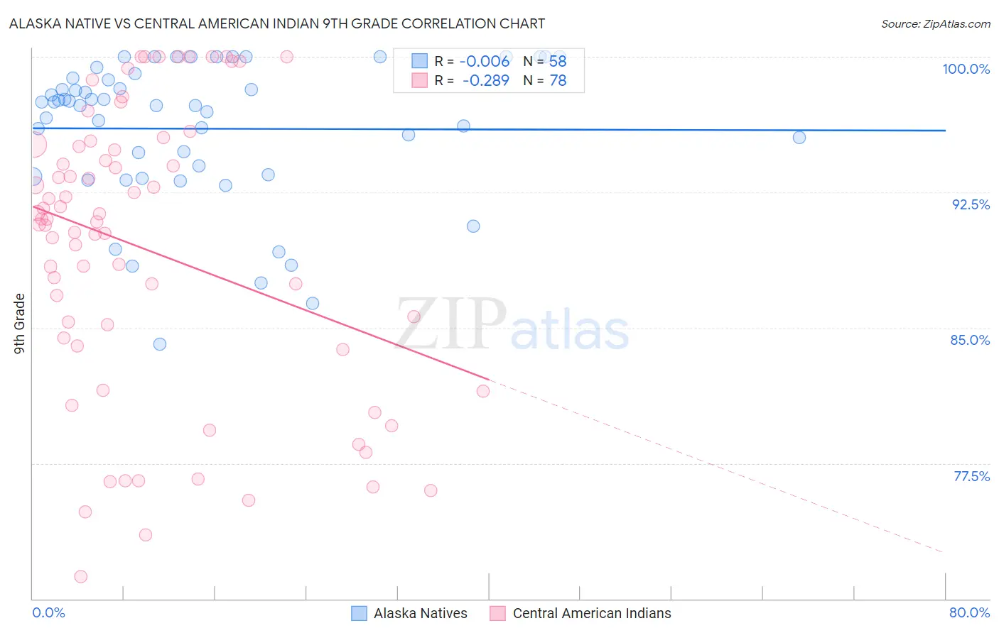 Alaska Native vs Central American Indian 9th Grade Correlation Chart
