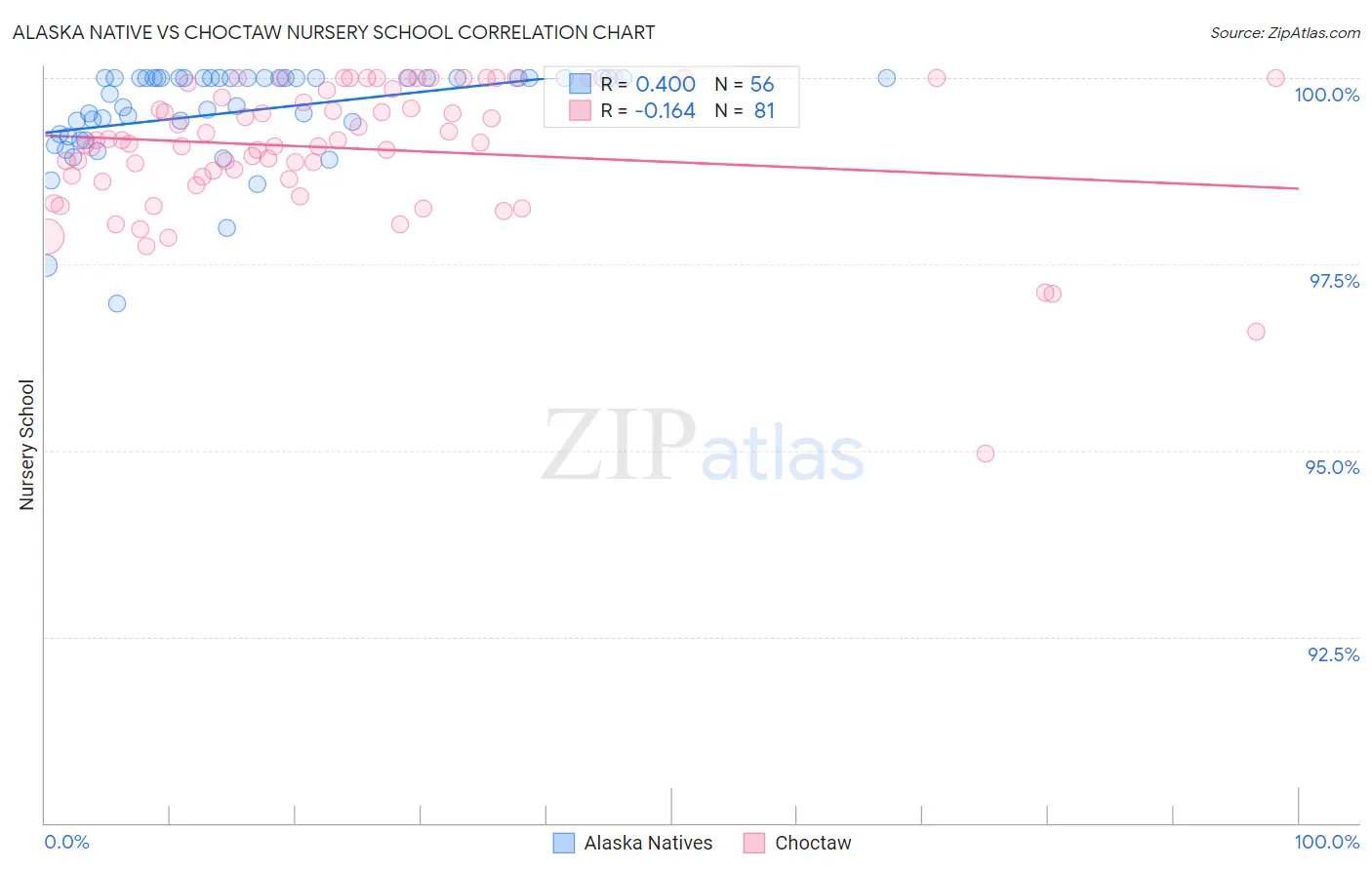 Alaska Native vs Choctaw Nursery School Correlation Chart