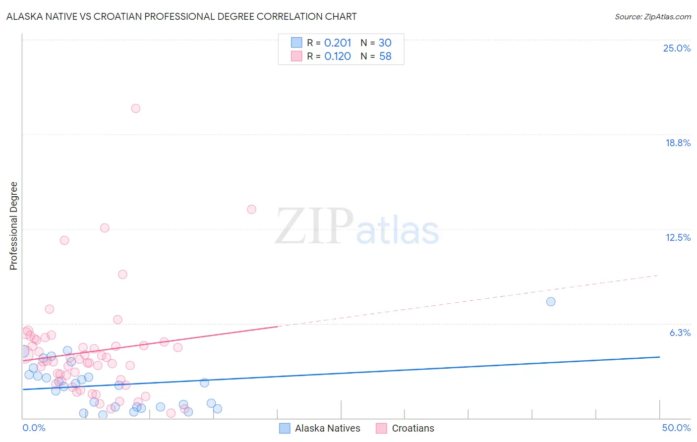 Alaska Native vs Croatian Professional Degree Correlation Chart