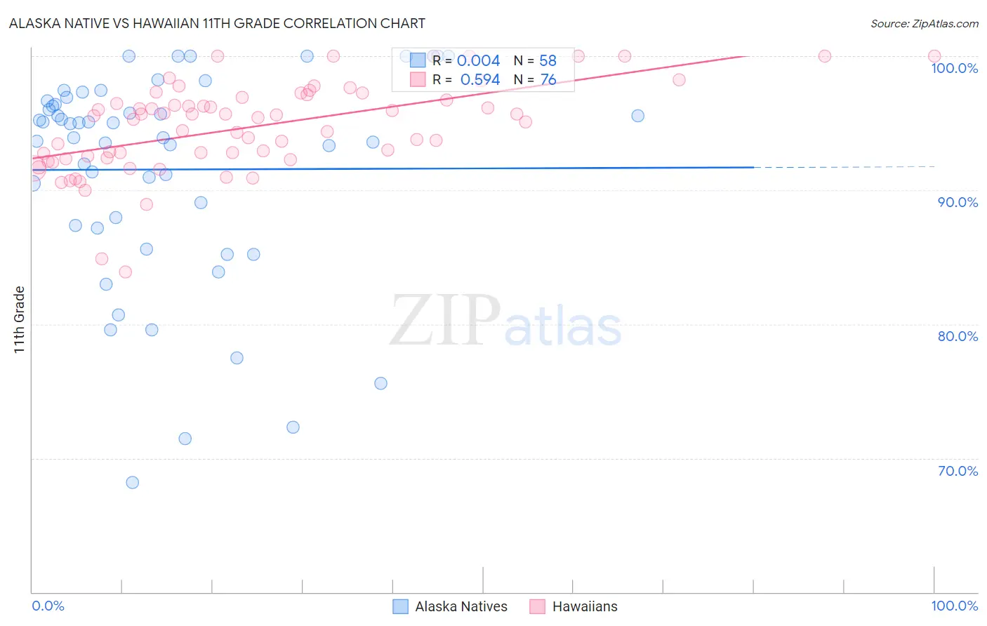Alaska Native vs Hawaiian 11th Grade Correlation Chart
