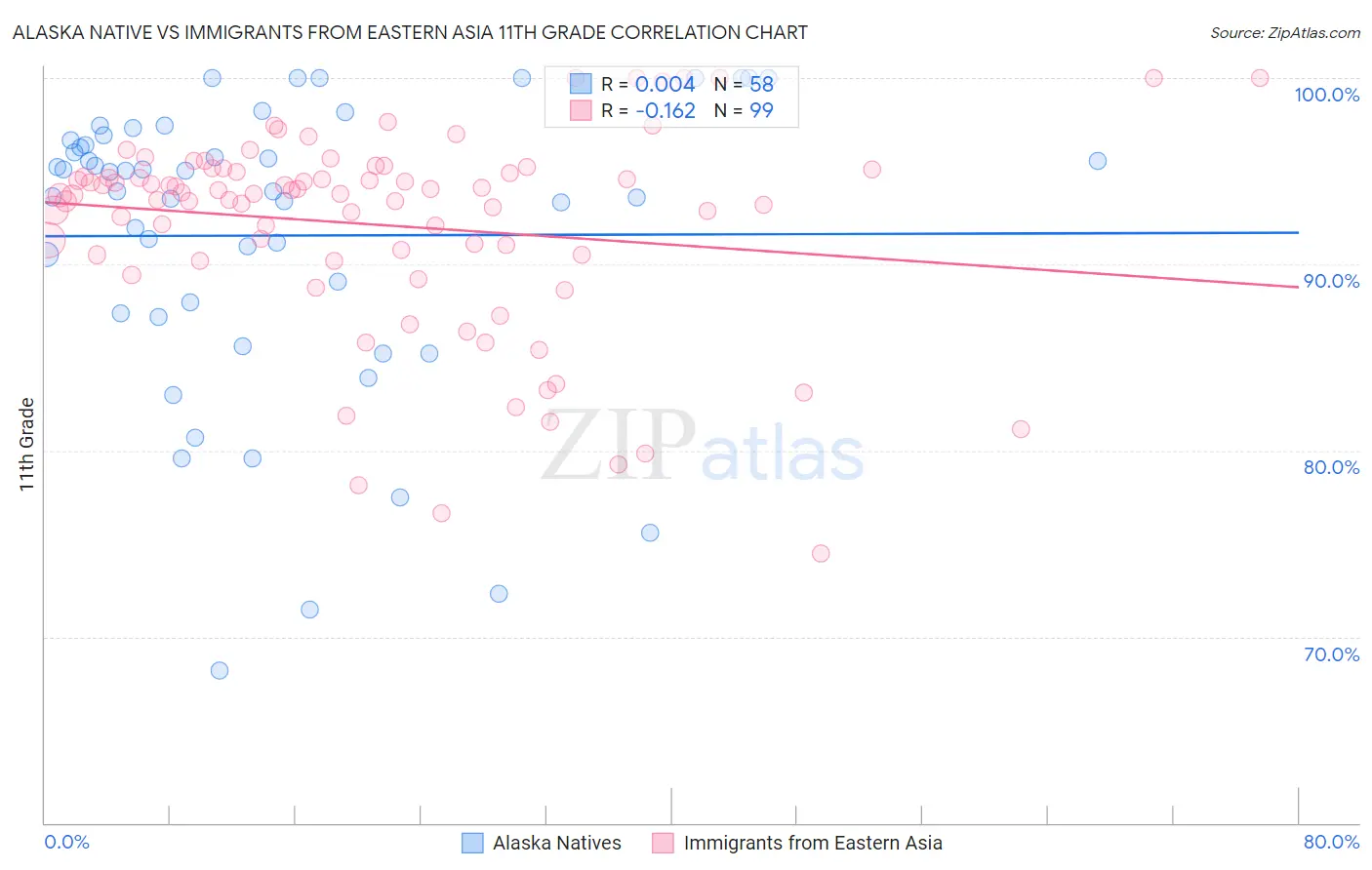 Alaska Native vs Immigrants from Eastern Asia 11th Grade Correlation Chart