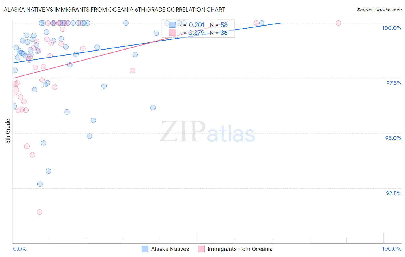 Alaska Native vs Immigrants from Oceania 6th Grade Correlation Chart