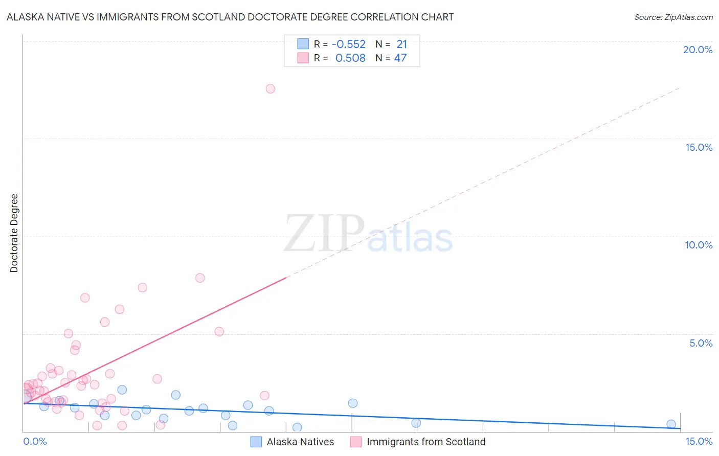 Alaska Native vs Immigrants from Scotland Doctorate Degree Correlation Chart