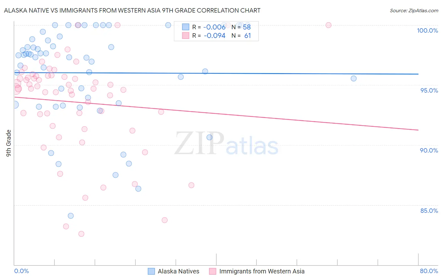 Alaska Native vs Immigrants from Western Asia 9th Grade Correlation Chart