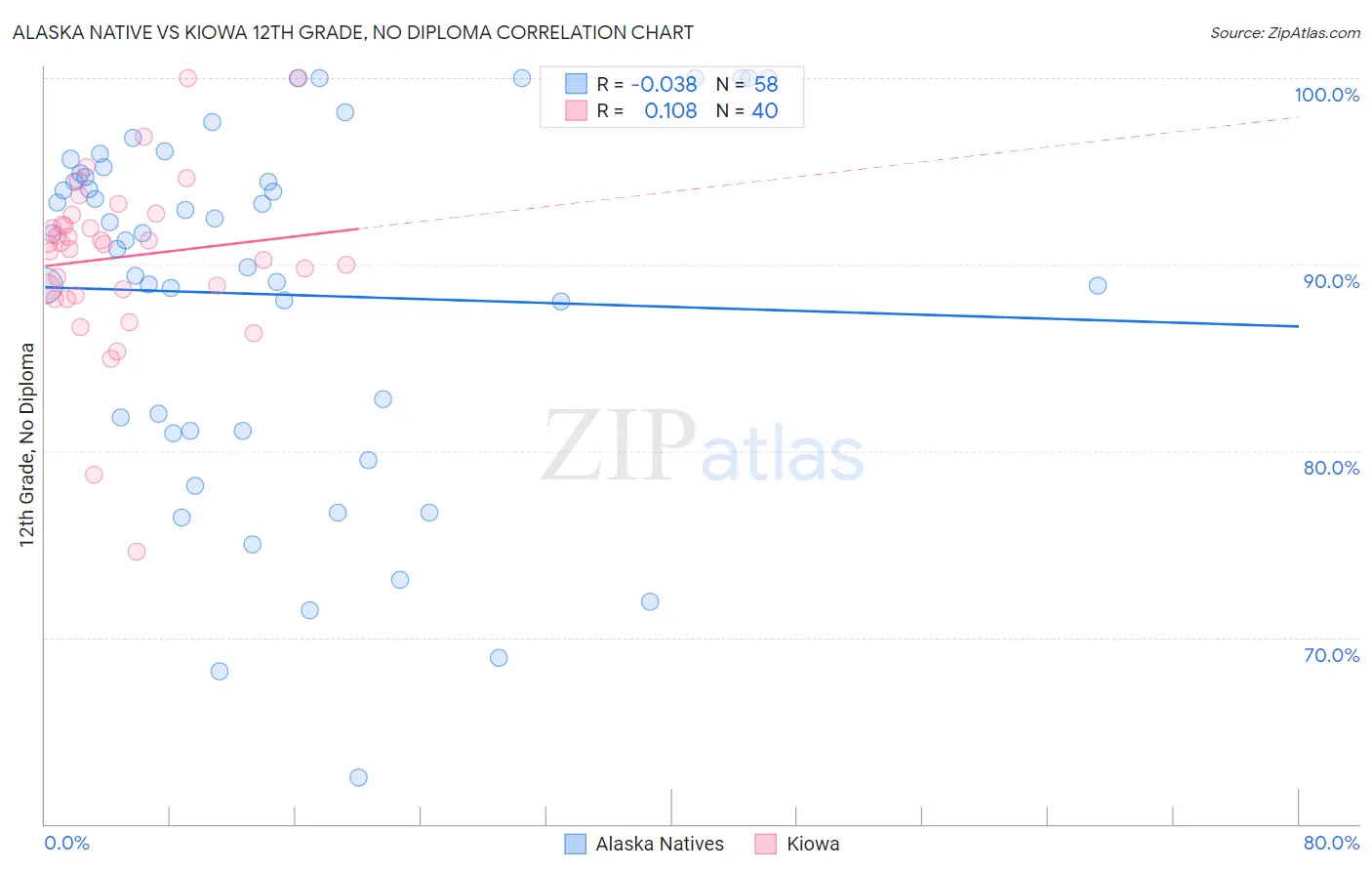 Alaska Native vs Kiowa 12th Grade, No Diploma Correlation Chart