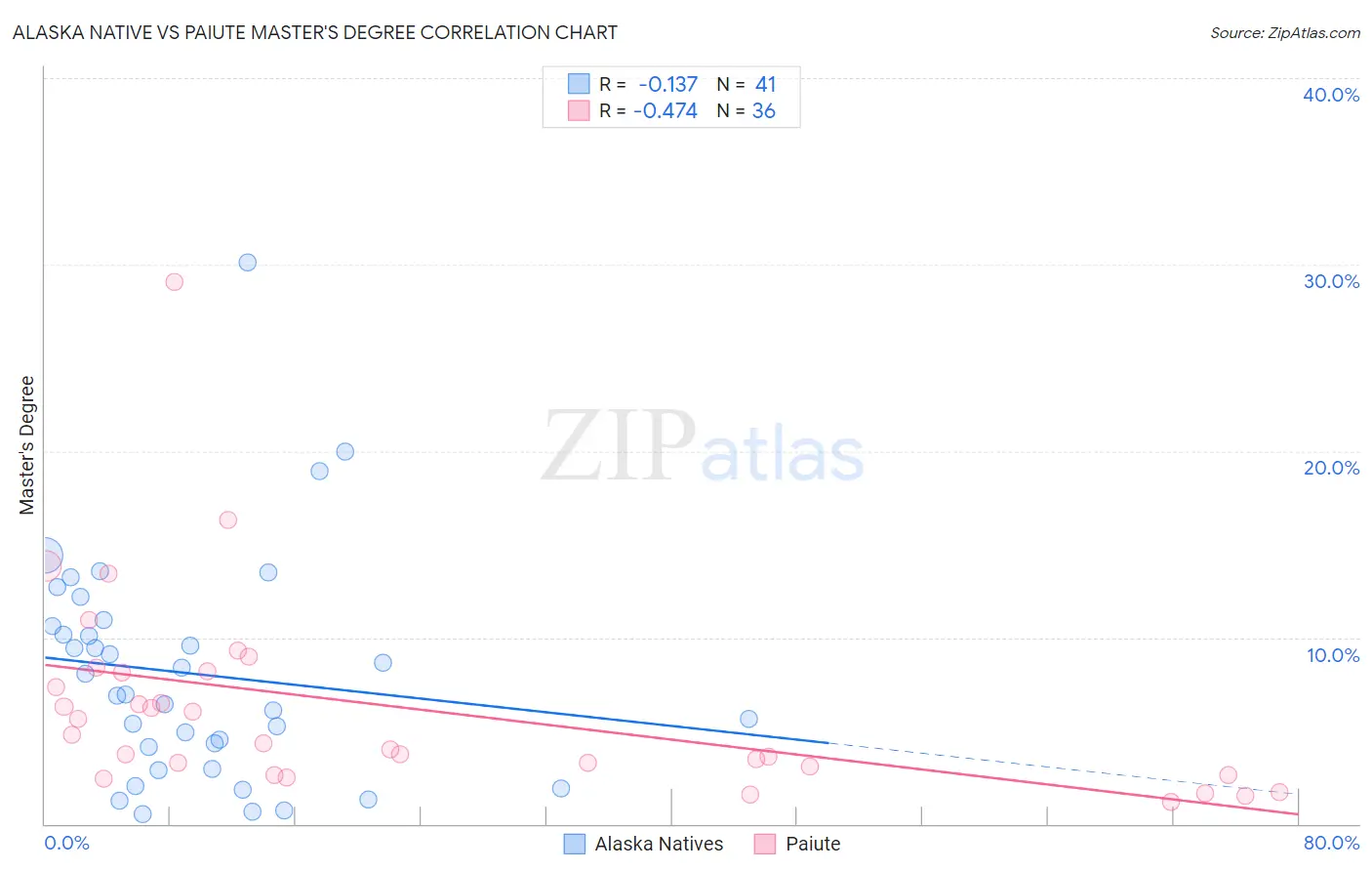 Alaska Native vs Paiute Master's Degree Correlation Chart