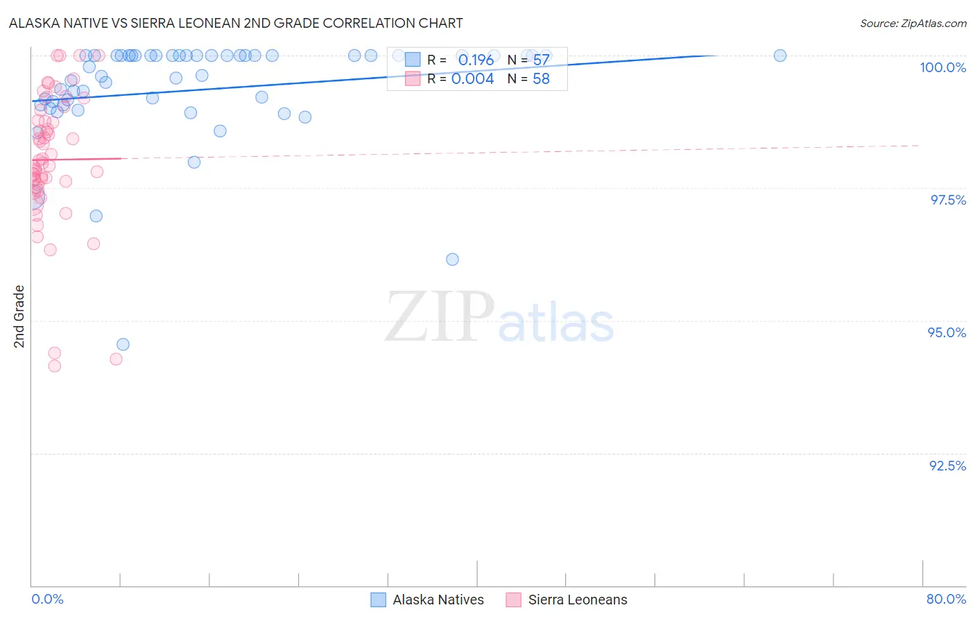 Alaska Native vs Sierra Leonean 2nd Grade Correlation Chart
