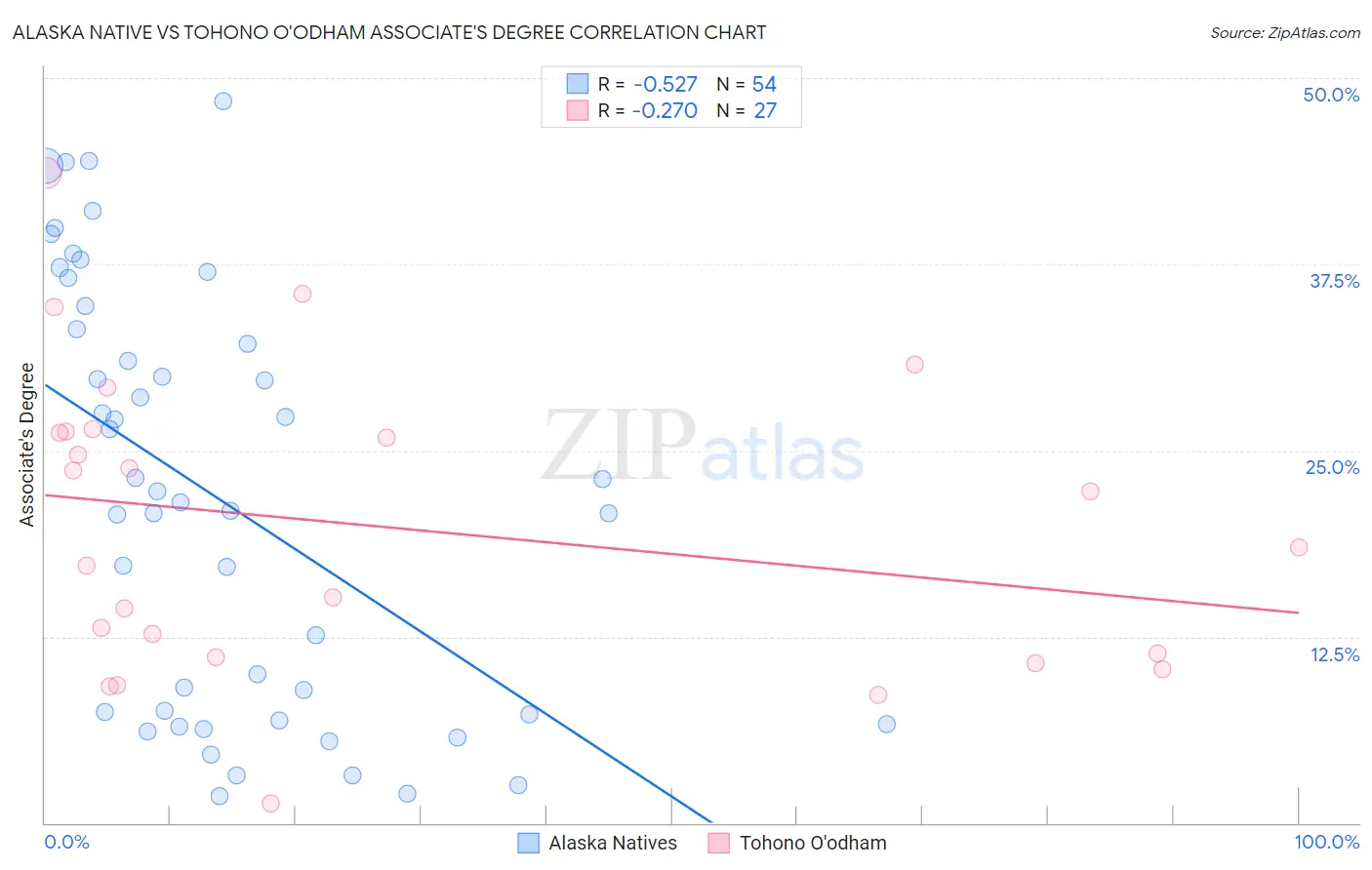 Alaska Native vs Tohono O'odham Associate's Degree Correlation Chart