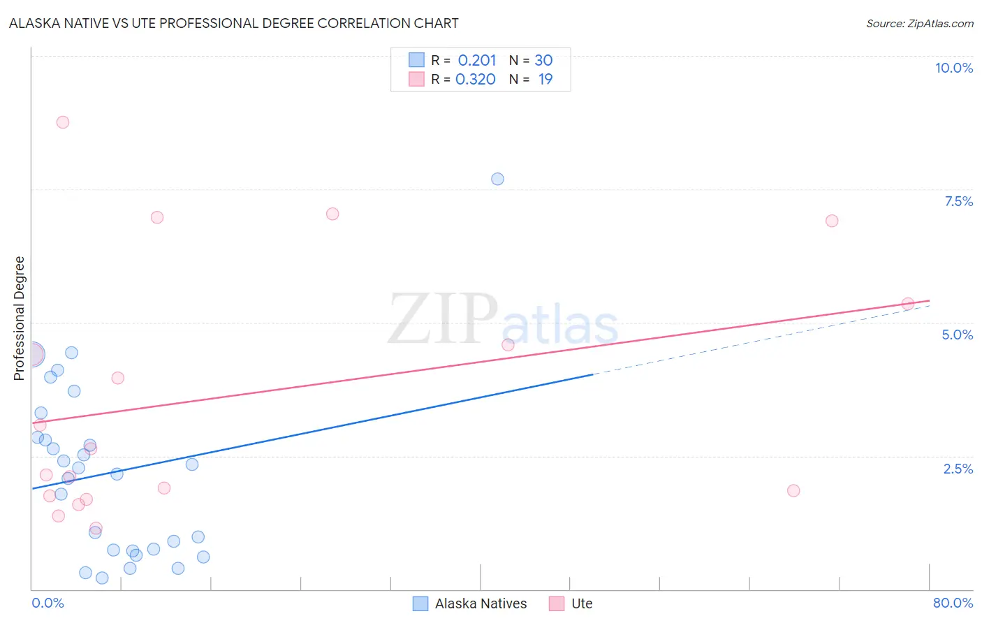 Alaska Native vs Ute Professional Degree Correlation Chart