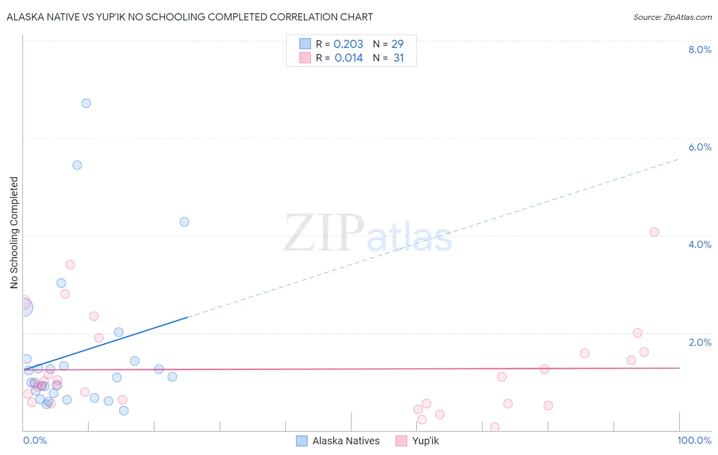 Alaska Native vs Yup'ik No Schooling Completed Correlation Chart