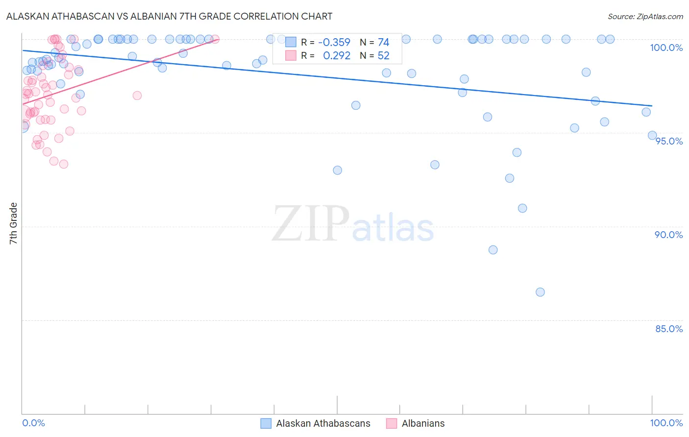 Alaskan Athabascan vs Albanian 7th Grade Correlation Chart