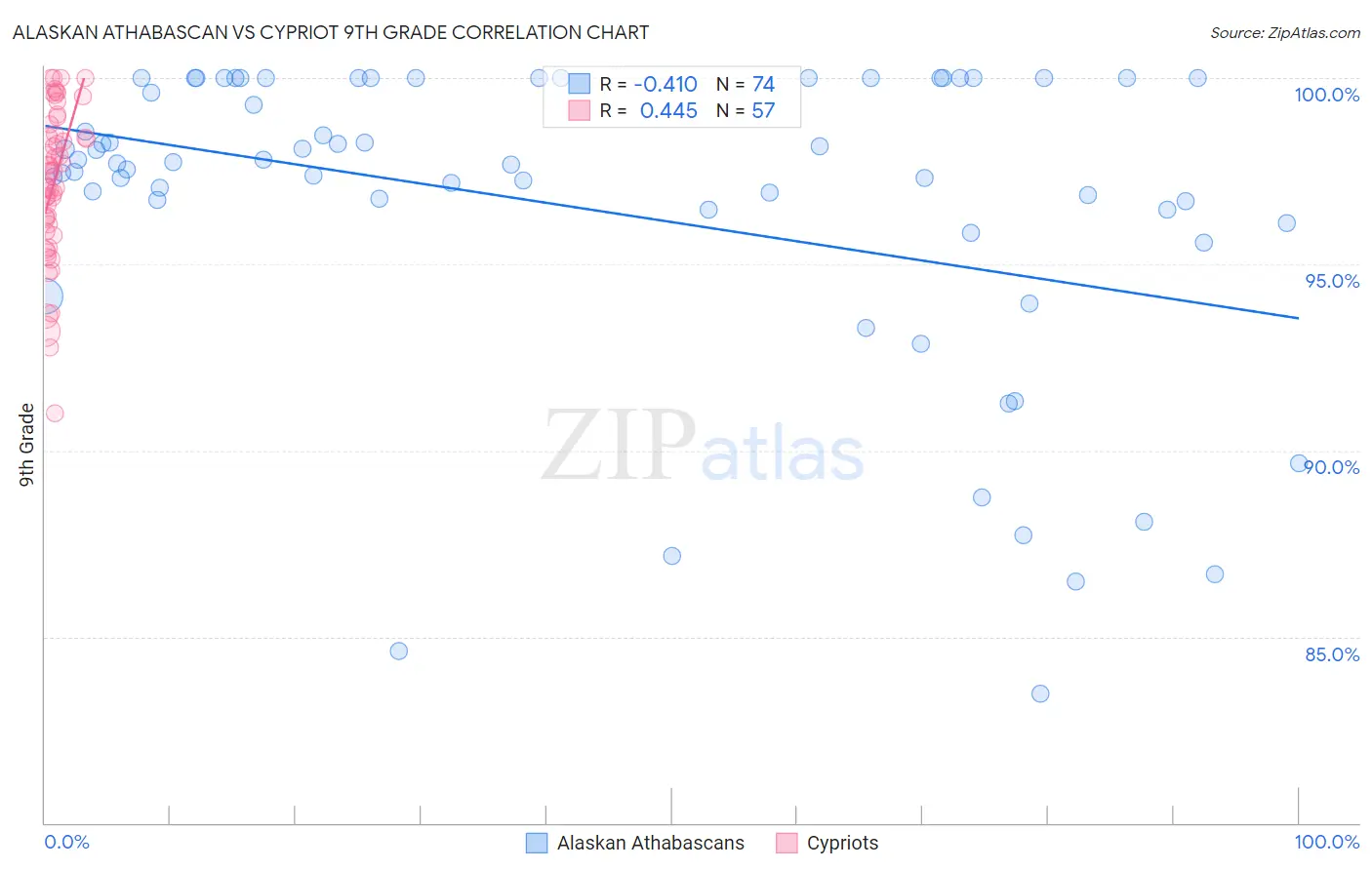 Alaskan Athabascan vs Cypriot 9th Grade Correlation Chart