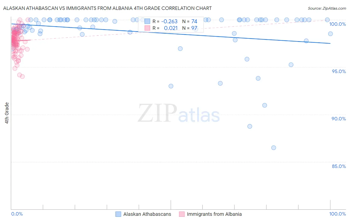 Alaskan Athabascan vs Immigrants from Albania 4th Grade Correlation Chart