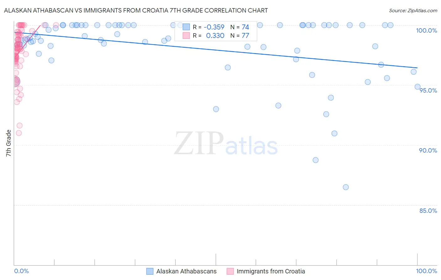 Alaskan Athabascan vs Immigrants from Croatia 7th Grade Correlation Chart