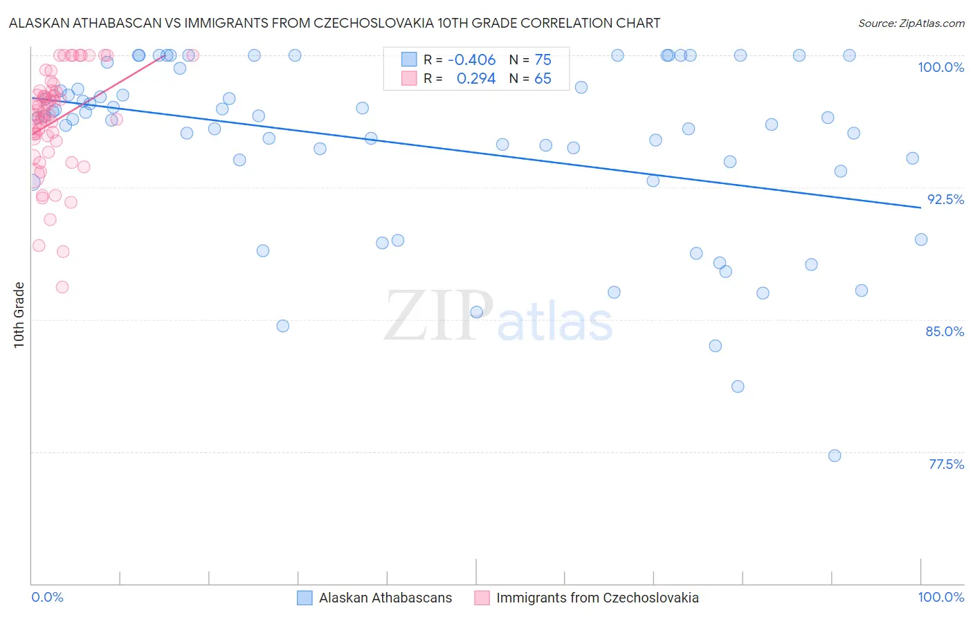 Alaskan Athabascan vs Immigrants from Czechoslovakia 10th Grade Correlation Chart