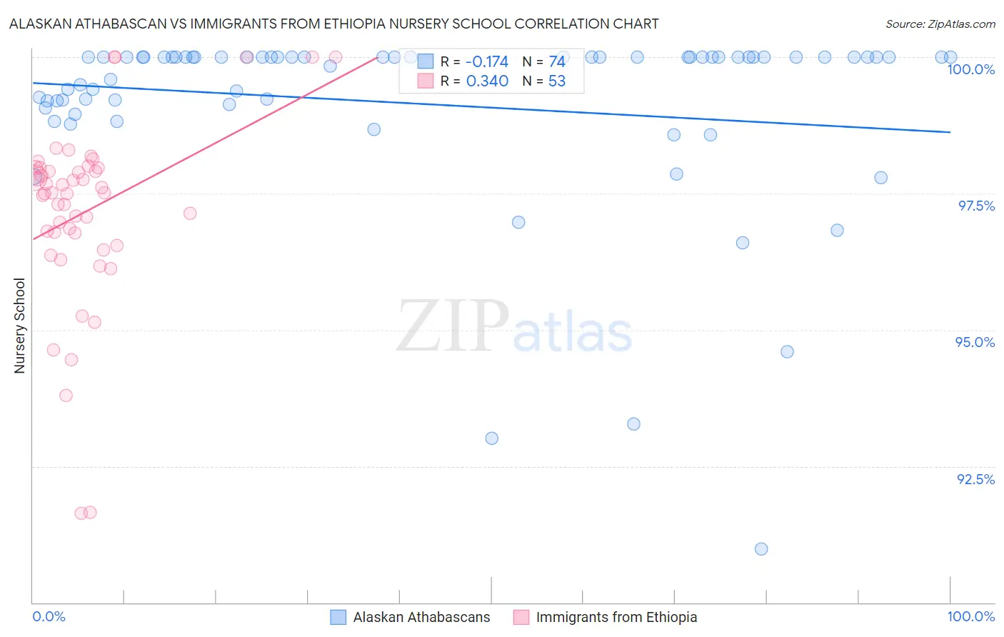 Alaskan Athabascan vs Immigrants from Ethiopia Nursery School Correlation Chart
